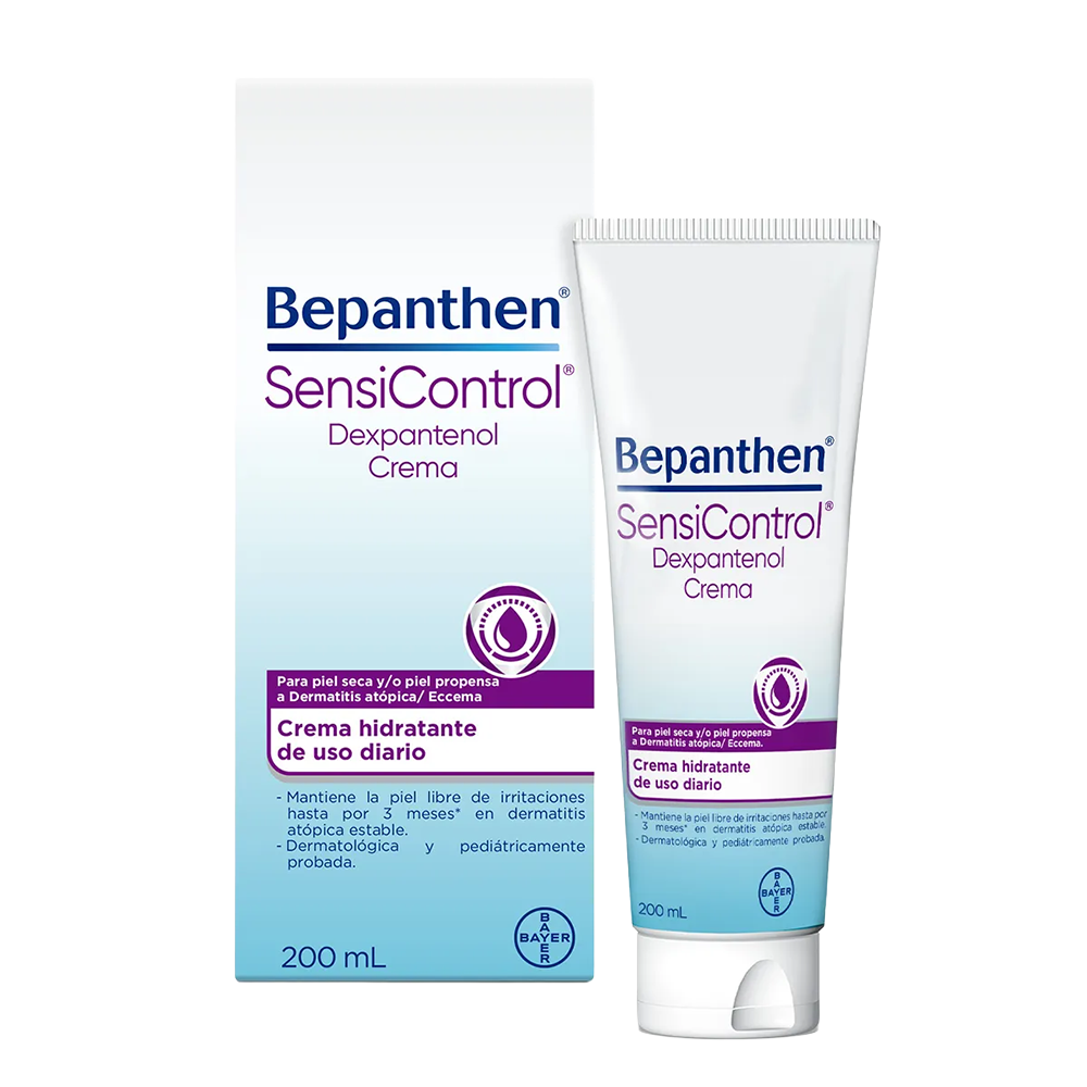 Bepanthen SensiControl es una crema hidratante de uso diario diseñada para pieles sensibles y con tendencia al eczema. Su fórmula contiene prebióticos que estimulan la microflora protectora de la piel, vitamina B3, pro-vitamina B5 (dexpantenol) y aceites naturales que fortalecen la barrera cutánea. Además, la tecnología Lipid Lamellar ayuda a restaurar la barrera natural de la piel desde el interior, proporcionando hidratación duradera.