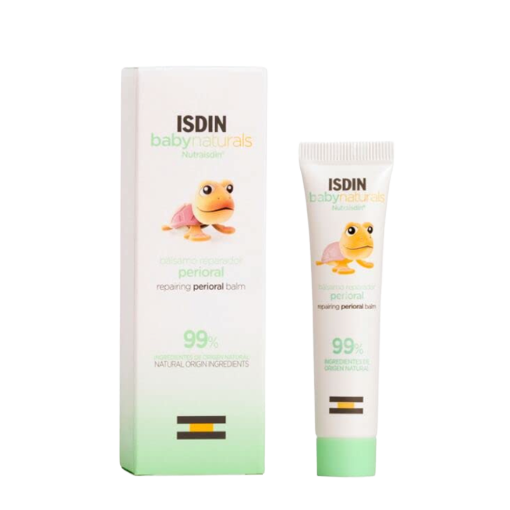 El ISDIN Baby Naturals Nutraisdin Bálsamo Reparador Perioral es un bálsamo formulado con un 99% de ingredientes de origen natural, ideal para proteger y calmar la piel alrededor de la boca, labios y nariz de los bebés. Está especialmente indicado para zonas afectadas por la saliva, el uso del chupete y condiciones climáticas extremas. Proporciona hidratación durante 6 horas y ayuda a reparar y aliviar la piel desde la primera aplicación. Es apto para su uso desde los 0 meses y ha sido testado pediátrica y dermatológicamente, siendo hipoalergénico.